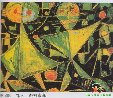2.图806这幅题为《舞人》的作品表现了两个舞人。这幅绿色调的画包含着两方面对比:深浅对比和红与绿的强烈对比。如果换一种色调,运用调和、对比规律,又该如何配置色彩呢?