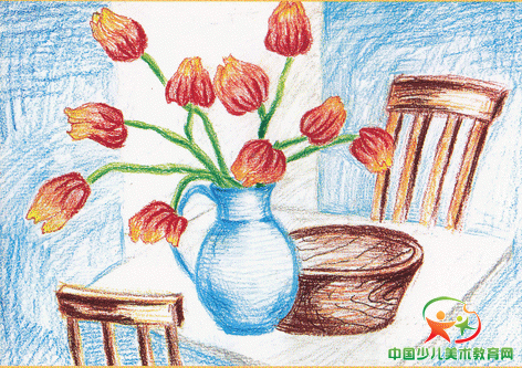 小朋友家里都有花瓶吗?它们都是什么形状的呢?一般花瓶有圆形的、方形的,还有动物的,质地有木头的、玻璃的,还有陶瓷的,等等。花瓶里还插有很多美丽的花,有红的玫瑰、黄的康乃馨、蓝的郁金香等。那么大家仔细回想自己家里漂亮的花和花瓶,一起跟老师画出来吧。