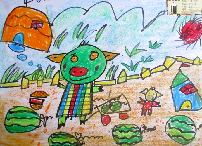 作品名称:《小猪吃西瓜》