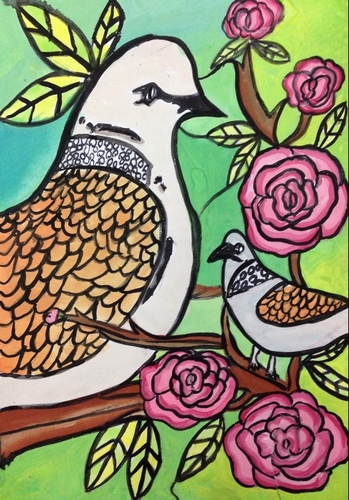 作品名称:《麻雀与玫瑰》
