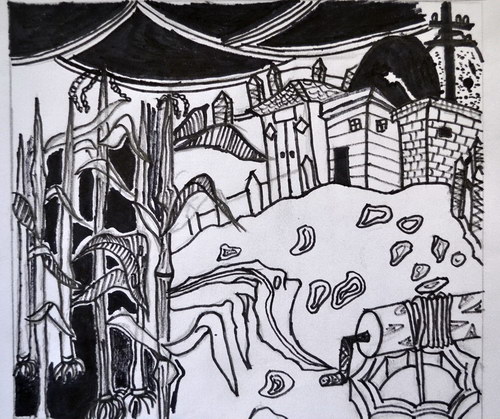 《农家院-黑白装饰画》