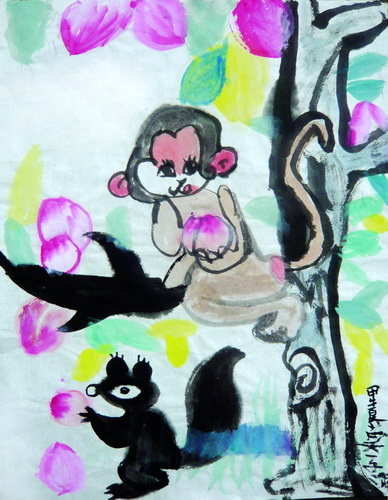 作品名称:小猴子与桃