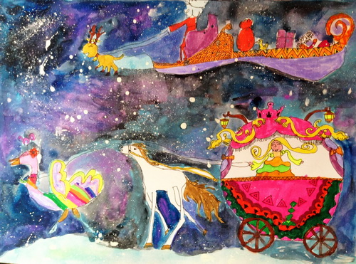 作品类别: 彩色水笔和水粉画
