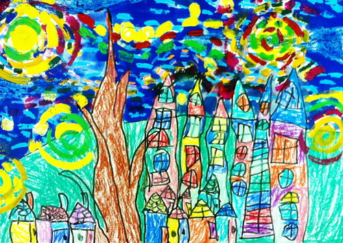 作品名称:《星空下的彩色村庄》