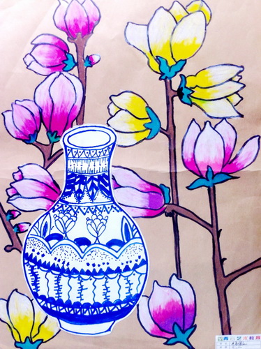 青花瓶玉兰