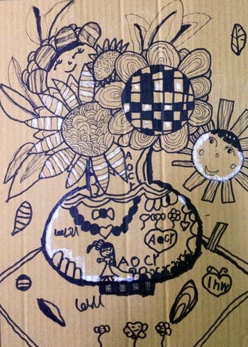 作品名称:纸板上的花
