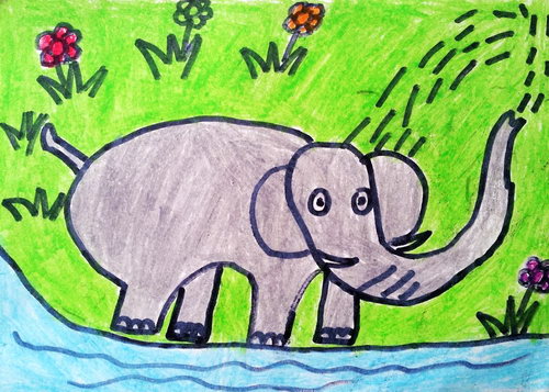 作品名称:喷水的大象