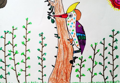 作品名称:啄木鸟捉害虫