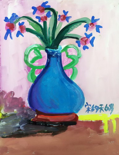 作品名称:《蓝色花瓶与花朵》