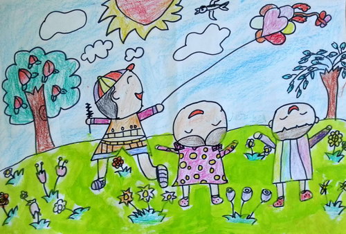 作品名称:放风筝的孩子们