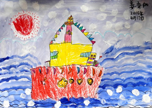 作品名称:《水粉画--海上游轮》