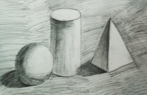 作品名称:《素描石膏几何体组合》
