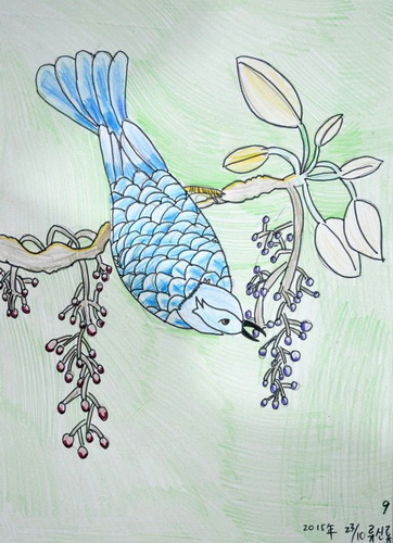 作品名称:吃果子的小鸟