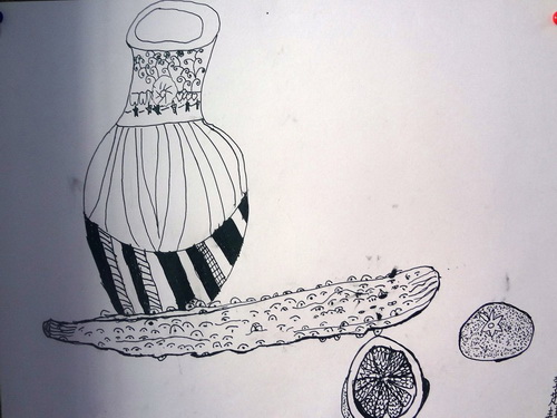 作品名称:写生黄瓜桔子