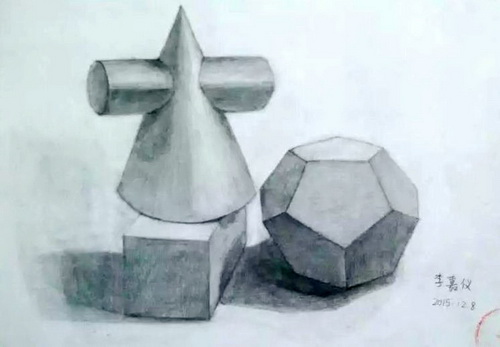 作品名称:几何体组合写生