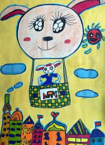 作品名称:《小兔热气球》