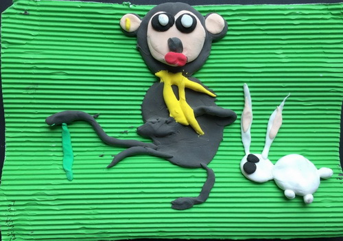 作品名称:《小猴和兔子》