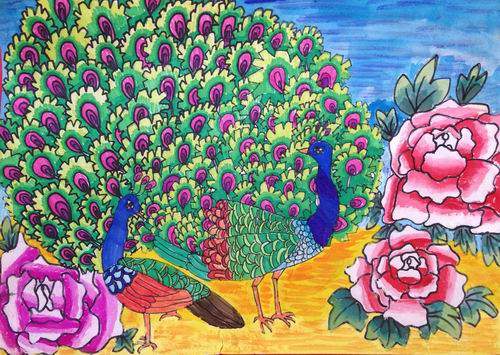 作品名称:孔雀与牡丹
