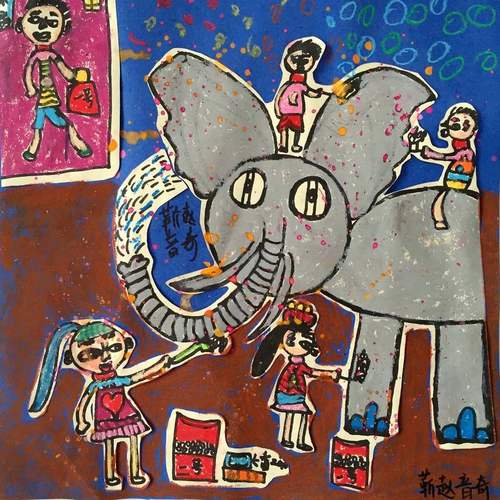 作品名称:我给大象洗洗澡