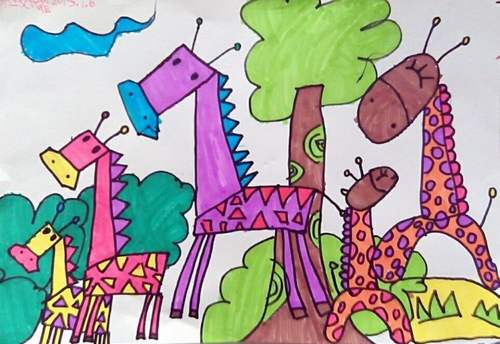 作品名称:长颈鹿一家