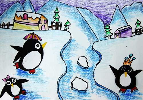 作品名称:拼贴画-南极的伙伴