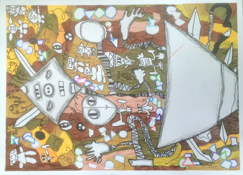 作品类别: 彩色水笔和水粉画