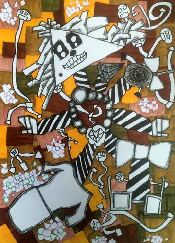 作品类别: 彩色水笔画和 签字笔