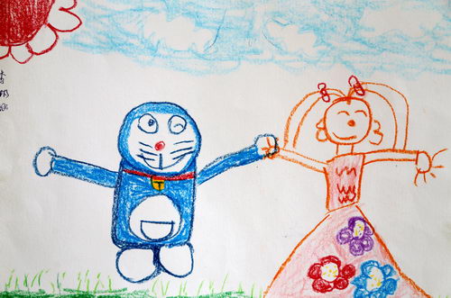 作品名称:我和机器猫在草原上游玩
