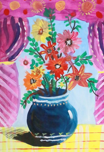 作品名称:窗前的瓶花