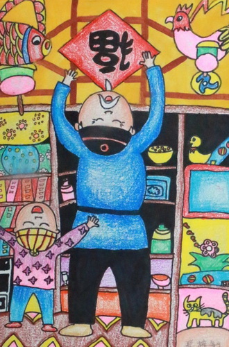 作品名称:爷爷贴窗花