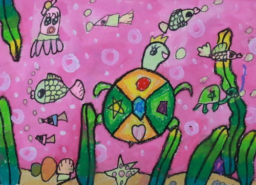 作品名称:粉色大海里的海龟