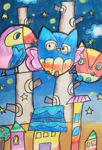 作品名称:彩色猫头鹰