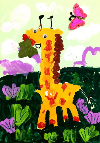 《花丛里的长颈鹿》