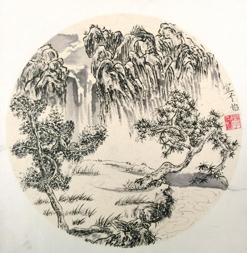 山水团扇