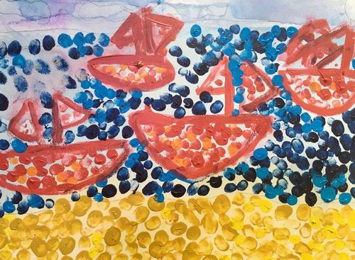 《点彩-红色帆船》