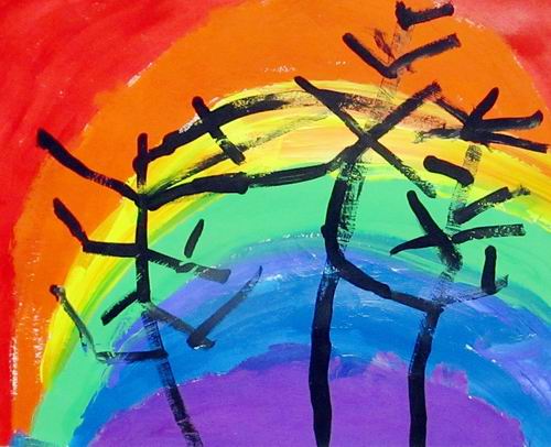 彩虹下的树影