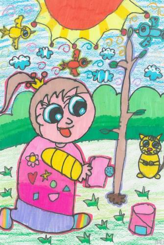 小女孩植树