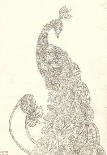 白描孔雀