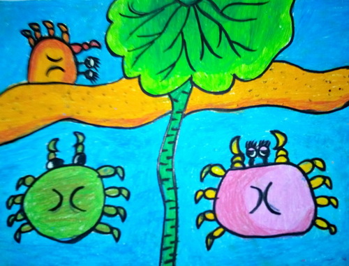 荷叶下的螃蟹