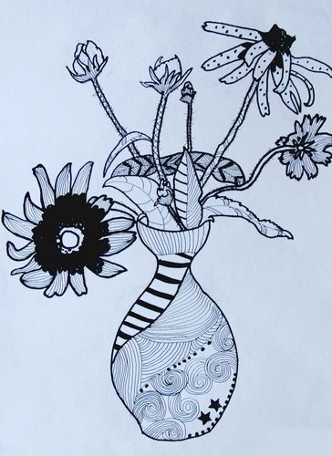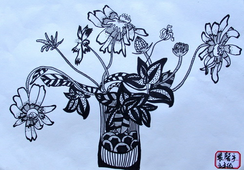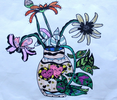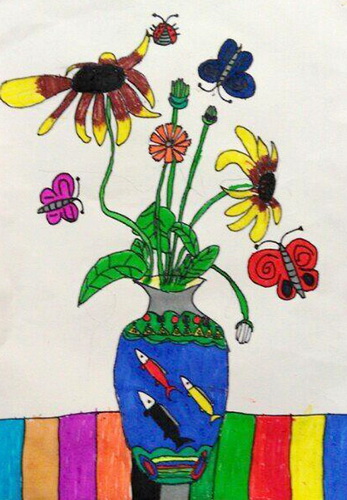 花瓶里的花儿创意写生