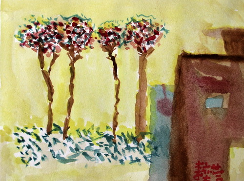 屋旁的几棵树