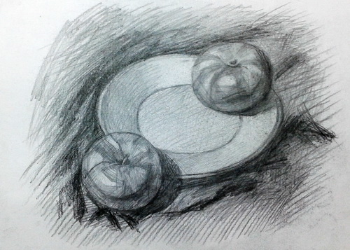 静物-瓷盆 苹果