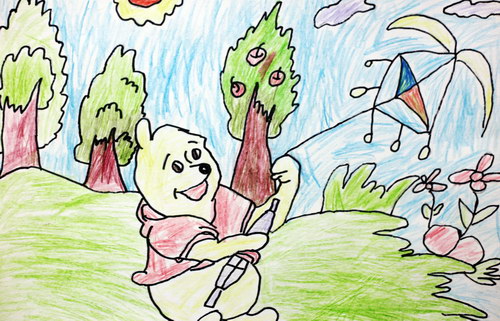 可爱小熊放风筝