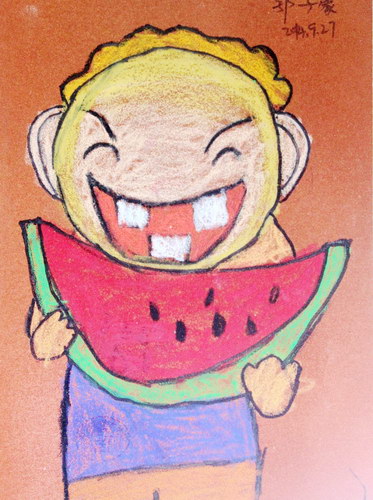 吃西瓜的小孩二