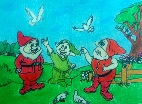 《小矮人喂鸽子》