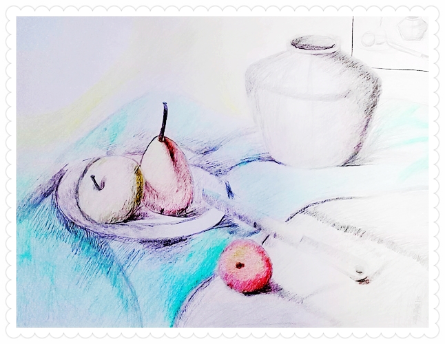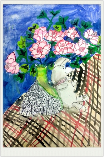 花瓶与兔子玩偶写生