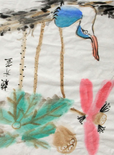 荷花水鸟