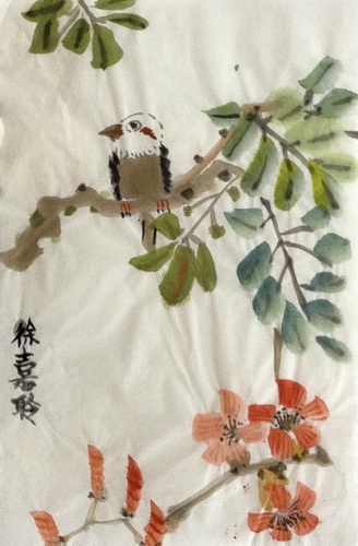 小鸟凌霄花