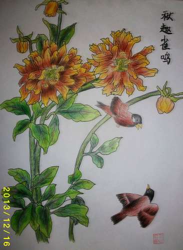 《秋趣雀鸣》