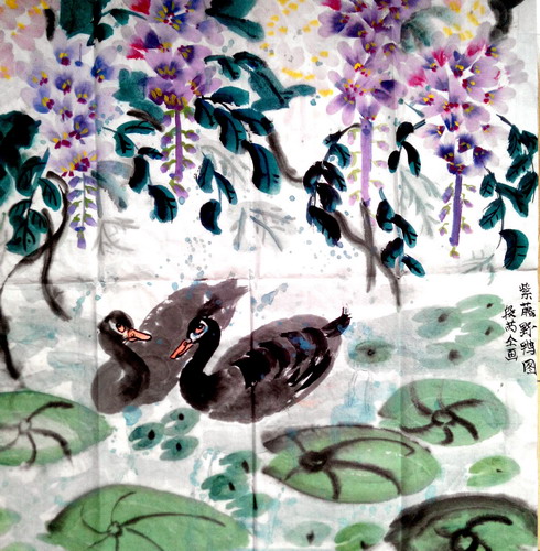 紫藤野鸭图